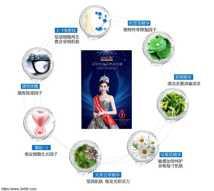 OACIE·欧奕诗逆时光极润亮颜面膜采用吸附性玻尿酸。大分子锁住水份,小分子修护缺水肌底。做到让肌肤吸收真正玻尿酸精华补水