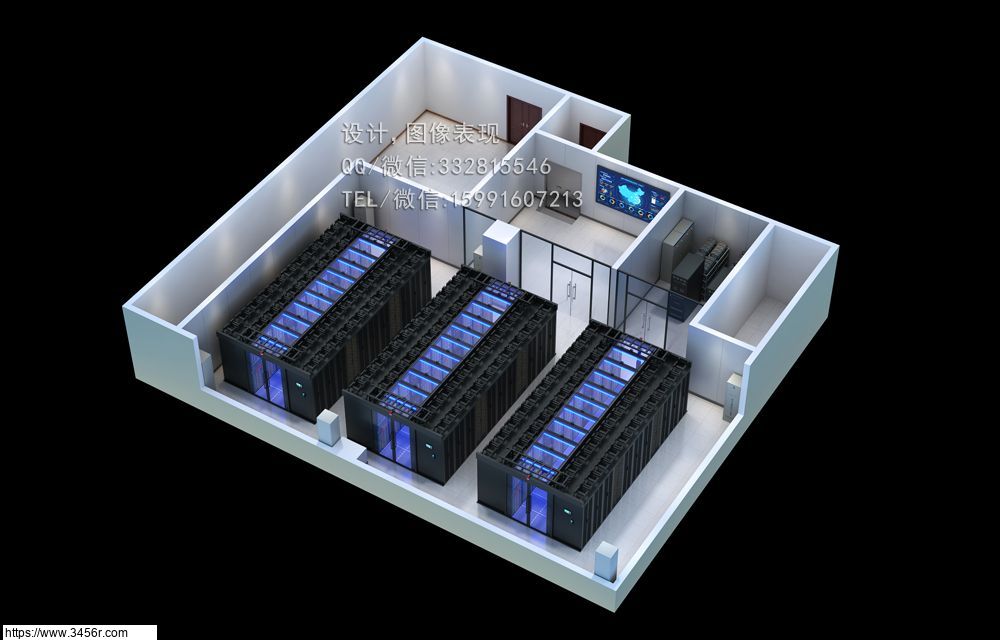 杭州机房办公室效果图制作|整体3D户型图俯视角度